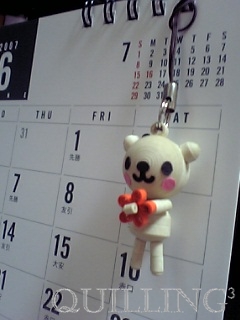 今日はストラップについて書こうと思います。 いつも一緒 普通クイリング作品をキーホルダーやストラップにする場合は、プラスチックの小さな透明ケースに作品を入れることが多いのですが、これは思いきって作品を直接ストラップにしてみました。 なので携帯やかばんなどの摩擦の激しいところにつけると、首がもげたりと悲しいことになりそうですが、画像のようにカレンダーなんかにちょこっとぶらさげたりしていただければと思います。 仕事なんかで疲れてふっと視線をあげたところにちょこんとぶらさがっている。。。 そ...