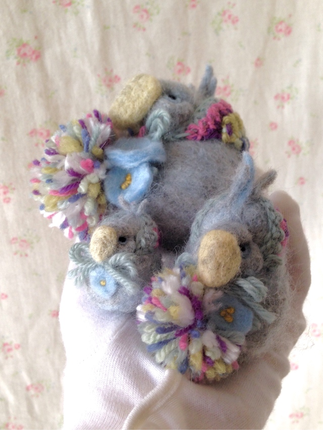こんにちは! ハシビリョーシカの新作が完成しました!! よろしくおねがいします☆ 手編みのほっかむりをしたハシビリョーシカ 3兄弟(MR-133) ハシビロコウとマトリョーシカが合体したオリジナルキャラクター “ハシビリョーシカ”の立体羊毛フェルト3兄弟!!3体セットです。 鋭い目つきでボーッと立っていることが多く 動く時もマイペースなところが大人気のハシビロコウ。 手編みのほっかむりを巻いてみました。 お腹部分にはあなたを応援してるかのようなポンポンと羊...