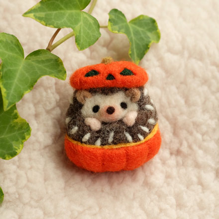 10月の奈良登美ヶ丘産経学園 羊毛フェルト講座では、ひと月で小さなブローチをつくります♪ どこかで見覚えのあるハリちゃん・・・ そう、てづバでもご用意したはりねずみインかぼちゃブローチなのですが、あちらは3〜4cmのミニサイズだったのに対し、小さすぎるとむずかしいので、みなさんにつくっていただくのはひとまわりちょっと大きめの4〜5cmにしています。 そして、こちらのほうが先につくっていたのでありまーす(*^^)v 10月前半なので、ぎりぎりハロウィンモチーフ...