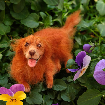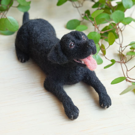 前回ご紹介したゴールデンレトリバーのドルくんと一緒にオーダーしてくださった相棒わんこ、 真っ黒のラブラドールレトリバー ボスくんのご紹介です はねつきりんごは基本的に羊毛のみで目鼻まで作るので、真っ黒わんこのボスくんは・・・ もう、どうしましょ〜状態です なんとか、少しフチを白っぽくするなどの工夫をしてみました 見本のお写真の中には白髪が多めに出たものもあったのですが、元気な若き日の姿がいいかなということでしたのでほぼまっくろなお姿...