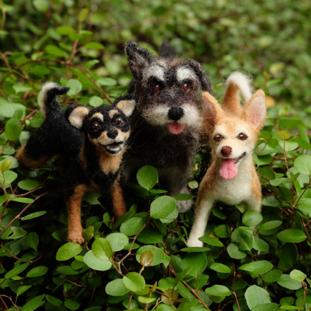 週末は、予報通り台風の影響で土日ともに雨・・・ 一日薄暗くって、もちろん早起きもできず、気分もあがらない〜〜 気晴らしにフェルトわんこ撮影用の寄せ植えの植え替えでもして・・・というのは明日以降にまわしまして、今日はブログUPにいそしみましょう ということで・・・ 前回までご紹介してきたハワイのMIX犬たち、トリオそろっての集合写真もご覧いただきたく、まとめました 集合すると、かわいさ3倍!いやそれ以上 ついつい調子にのって今回も写真たくさんです! 飽きな...