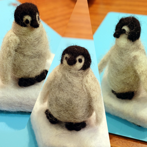ペンギン親子をつくる、第一弾 7月は子ペンギンをつくりました 子ペンギンは小さいしかなりシンプルな構造ですし継続のお三人さんだけでしたので、ちょっと気楽に・・・ と思ってしまって、油断しちゃいました 新しい方が不慣れでとまどわれる部分も多くそちらに手をとられているうちに、ほかのお二人の方に目がいかず 結局どちらも中途半端になってしまったような気がして反省中でございます たっぷりもこ〜っとしたボディが、シンプルな中で重要なポイントです。...