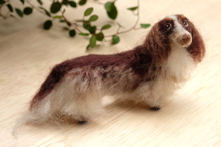 今年もオーダーわんこはダックスづいております インスタをみてくださった方からのオーダー。 「パイボールド」という複雑な柄のミニチュアダックスのNALUちゃんです ボディーの横と手足の上の方がチェッカー柄のようなまだらになっています。 角度によって毛色の見え方が違うと飼い主さんもおっしゃっていたのですが、見本で見せていただいたお写真も黒っぽかったりアッシュっぽい茶色だったり・・・ とても悩みながらつくりましたが、「こんなに毛色を似せることができる...