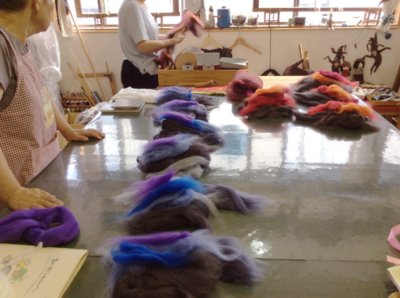 先日の教室のようす。 大変恐縮ですが、宮本牧場の宮本さんが フェルトの教室に来てくださいました。 宮本さんの家がご近所だという、Oさん お二人の会話が、とても和む〜!! 作業中も忙しい宮本さん ローリングしながら、話をすすめます はさみ1本で、丁寧に毛刈りをする宮本さん 羊業界では みなさんご存知、先駆者のお一人です。大先輩。。 ひつじを自家用車で運んでしまう、楽しい...