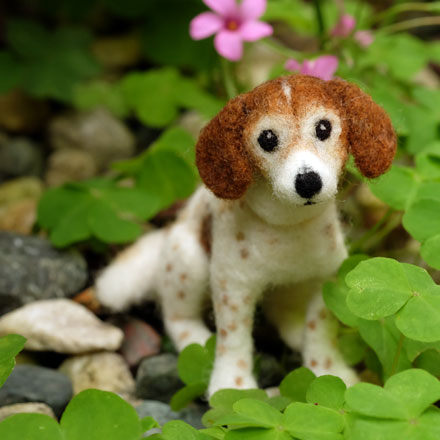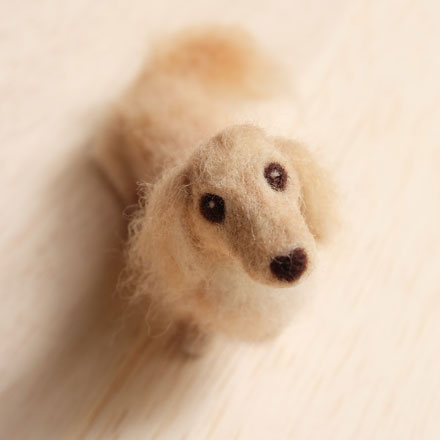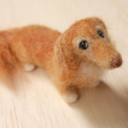 前回ご紹介したミントちゃんと同じ方が、同時にご自分の愛犬のフェルトわんこもオーダーしてくださっていました ミニチュアダックスのくるみちゃん。こちらも通常サイズです。 くるみちゃんがよくするという、ちら〜っと横目のうわめづかいの表情をご希望でした おちゃめな表情がとってもキュート 別の角度から見てみると、また違った表情にみえます ボディーは短め、ちょっとぽっちゃりとのこと。 ころころっとしつつ、ダックスなので長さも感じられるように、とバランスを考えてつくりました。 ...