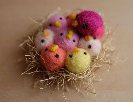 ニューアイテムのご紹介です お母さん鳥がひな鳥たちを見守る姿がほほえましい、小鳥の巣ブローチです ひな鳥たちをイエロー系でまとめたものや・・・ 青系でまとめたもの。 ひとまわり小さく、ひな鳥の数も少ないタイプもあります。 こちらは大きい方で、たまごを抱いている姿 お母さん鳥、無表情ですが必死です。真ん中のたまごだけなんだかキラリ たまごタイプにはコットンパールがひとつついています 小さいサイズのたまごタイプにも・・・ 全体のサイズは、小さい方...