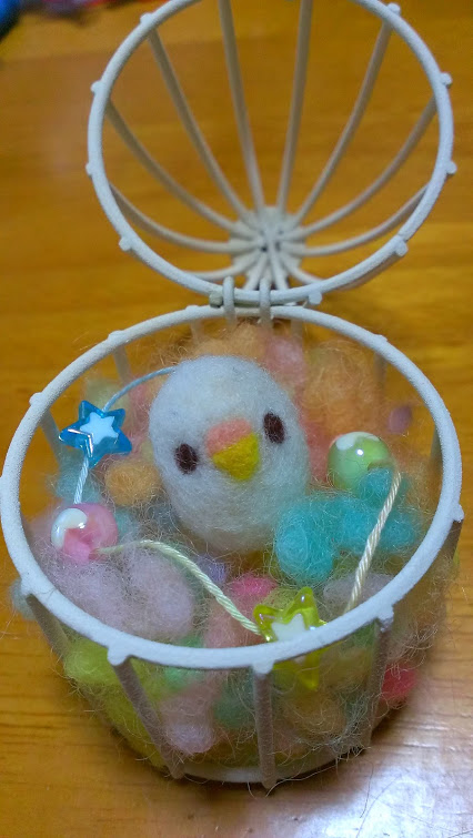 インコ赤ちゃんのゆりかごをつくりました♪ セキセイインコのアルビノの赤ちゃん* このかご、パカって開くのです 閉じたところ↓ 2作目☆ オカメインコさんのルチノーの赤ちゃん♪ かごはセリアさん(100均) クッションはペレンデールかまくらさんのポップウールを 使わせていただきました(^▽^) JUGEMテーマ:羊毛フェルト