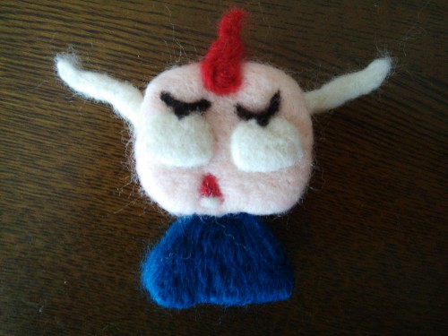 JUGEMテーマ:羊毛フェルト 羊毛フェルトで魔法陣グルグルのギップルちゃんを作りました。 「ギップリャー!」「ク、クッサー!」と言ってるように作りました。 何か羊毛フェルトで作りたくなって考えて作ったのがギップルちゃんです。 とても懐かしい気持ちになりました。 羊毛フェルト ハマナカ