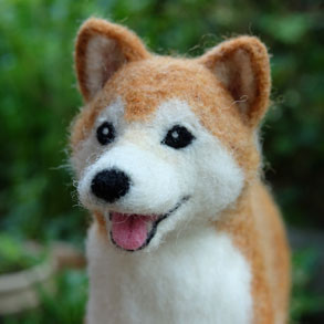 shikiさんのお客さまからのオーダー。 今年の2月に愛犬を亡くされて以来悲しみにくれておられたとのこと・・・。 以前オーダーいただいたシーズーのうっちゃんの飼い主さんとご近所で、フェルトわんこのことを知られたそうです。 柴犬のレオちゃん。 途中まで口をしめたお顔にしていたのですが、笑っているような元気な表情が気になって、口をあけた表情にチェンジしました。 下あごの歯も2本だけつけました 口元がしっかり精密に作れたのは、3倍サイズだからです 全身で16〜18cmくらいの大きさです。 ...