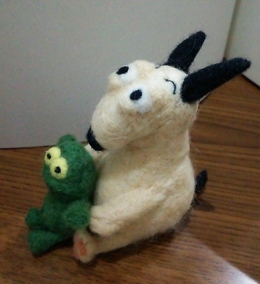 JUGEMテーマ:羊毛フェルト 赤柴出来上がりました。体高7cm位、植毛して5mm位にカットしたらさわり心地抜群でした。 先に出来上がった黒ちゃんは目と耳と両前足を外して作り直し中です。 作り直して並べてオッケーなら対でプレゼント! いまの自分の実力では、この大きさで細かい特徴を表現するのはなかなか難しいのがよくわかりました。 もう少し大きく作ると肢のバランスもとりやすく、表情も作りやすいようです。 次の作品は、以前から作ってみたかった、ある絵本の名コンビを作ろうかと考えてます...