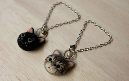 先日トラ猫のトラくん・黒猫のクロちゃんのマスコットをオーダーいただいたお客さまから、追加オーダーをいただきました! 当初から「フェイスも気になるんです」とおっしゃっていて、やっぱりお願いします、とのこと アイテムはブローチでもシュシュでもバッグチャームでも、お好きなものにできますよ〜とお伝えしたところ、バッグチャームでのご注文となりました フェイスタイプですと、顔のサイズがかなり大きくなりますので、間延びしないようにしつつも、こまかい作業が可能なので、特にトラくんは、できるかぎり柄もし...