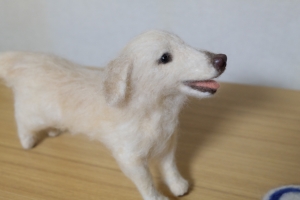 JUGEMテーマ:羊毛フェルト 前回の更新からしばらくご無沙汰していました。途中いろいろと用事が重なり完成に時間がかかりましたが、ハンドカーダーを使用し羊毛の色を調整して体毛の濃淡を表現しようと頑張ってみました。 モデルはゴールデンレトリーバーのすみれちゃんで、これで四つ目になります。今回フリスビーをくわえているのは、ドッグランで遊ぶとき、ボーダーコリーのくまこがキャッチしたフリスビーを横取りして、胸を張って得意げに運んで来る姿を作りました。思い出しながら作っていると無性に会いた...