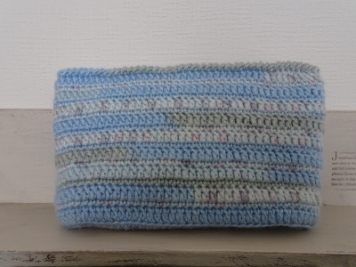 JUGEMテーマ:*かぎ針編みでハンドメイド* 先日色違いをUPした 段染め糸のファスナーポーチ、 やっと画像を取り込めたので 紹介できます。 こちらは水色。 内布は水色と黄色の小花柄です。 私が暖色の方が好きなせいか 青系に合う布をあまり持っていないので ちょっと探してみようかなー。 そしてまた布が増える…(汗)