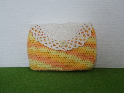 JUGEMテーマ:*かぎ針編みでハンドメイド* ゴールデンウイークも後半ですが 我が家は通常通りです。 あ、でも多少お留守番が増えるので 食事の支度に手を抜けるのがこの時期のちょっといいところ。 製作もゆるゆると進めています。 これは先日のイベントでご縁があって、 手元にはもうありませんが一応ご紹介。 またまた段染め糸で ポーチ、というかミニバッグ? 通帳が入る大きさです。 以前自分用に作ったのが使いやすかったので イ...