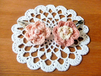 姪へのプレゼントに、お花のパッチン留めを作りました。 最近、お花を立体的に編む方法がようやく分かり パッチン留めのデザインに取り入れてみました。 お花の上にはピンクのパールビーズを。 裏には、パッチン留めとお花を固定した部分が見えないように 円状に編んだものを縫い付けています。 ちなみに、下に敷いているコースターはこちらと同じもの。 前回は、花びらを18枚→17枚に編み間違えてしまったのですが 今回はちゃんと18枚編みました。 こちらは姉にプレゼントします。 JUGEMテーマ:*かぎ...