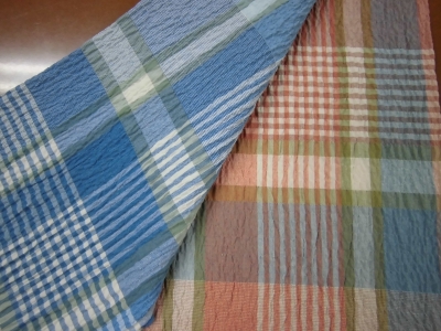 JUGEMテーマ:生地色々 引き続き秋冬物ご紹介致します 左からNo.7583 c/#1,2 (綿100%) 絣のスラブ糸で刺し子の入った生地です スラブの凹凸感と絣のグラデーションがいい感じでマッチしています 続いてはこちら 左からNo.7595 c/#1,2 (綿100%) ※c/#2はパープルです 一見、先染無地の風通生地の様ですが、 裏面がギンガムチェックになっているので リバーシブルでお使い...