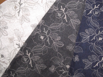 JUGEMテーマ:生地色々 まずは、特に今季売れ筋のものをご紹介したいと思います 左からNo.7536 c/#1,2 (毛50% 綿50%) こちらの生地は大人気で、リピート加工中です c/#1の全体柄 c/#2の全体柄 ウール部分がふわふわしています 綿混生地なので、秋にぴったりだと思います ストールにしても可愛いです こちらも絶賛リピート中 左からNo.7544 c/#1,2 (毛65% 綿35%) こちらはリバーシブルでお使い頂けるので、 部分的に裏面を使ってもいい感じになると思います 柄的にテト...