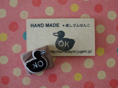 JUGEMテーマ:消しゴムはんこ 消しゴムはんこも新作。 人気のOKシリーズに 2種類追加しました。 まずはあひるのOKはんこ。 黒インクだとあんまりアヒルっぽくないですが いろんな色でカラフルに捺しても カワイイと思います。 文字の入っていないあひるも作りました。 そしてぶさカワ系わんこのOKはんこ。 この手は食いつく人はすごく食いつくんだけど、 少数派なんですよね〜^^; ...