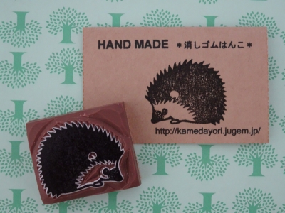 JUGEMテーマ:消しゴムはんこ はりねずみはんこに 新しい図案が出来ました♪ 今回のは鼻のまわりを 黒くしてみましたよ。 はりねずみのはんこはなかなか人気です。 欠品中の文字入りはりねずみはんこも そろそろ追加したいところです。