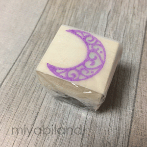 こんにちは、消しゴム彫刻家の藤嶋みやびです。 今日のご紹介もオーダーはんこです! こちら! おしゃれな月マークです。 このイラストに合う、消しゴムといえば、やはりブラック! ということで。 ほるナビのブラックかためを使用しました。 いかがでしょうか? 綺麗にできました! オーダー、ありがと...