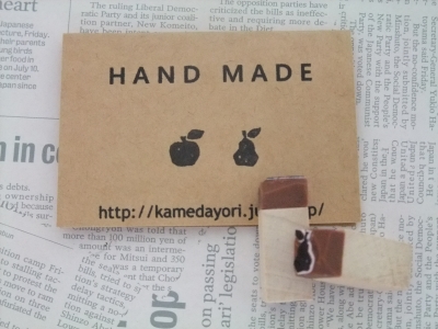 JUGEMテーマ:消しゴムはんこ 紹介し忘れていましたが、 ミニミニはんこの新作です。 2cmサイズのミニはんこで人気の図案、 りんごと洋なしを 1cmサイズのはんこにしてみました〜。 さすがに細かくは彫れないので シルエットで。 いろんな色でたくさん捺すと可愛いかも♪