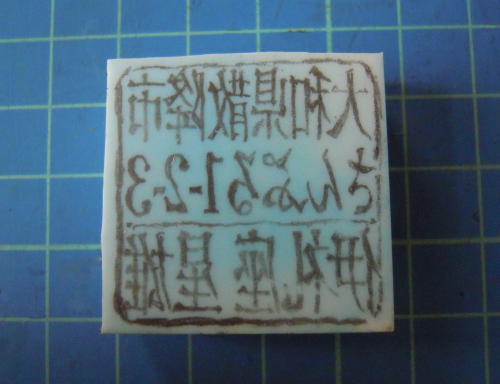 過日お約束した住所印を、遅ればせながら載せたいと思います。 では、改めて、住所印の制作過程を公開します。 今回は彫っている途中のモノを載せます。 次回につづく.........。