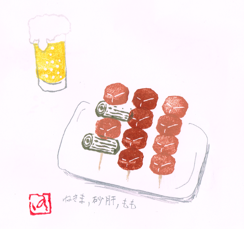 JUGEMテーマ:消しゴムはんこ ここ数日暑い日が続いていますが、いかがお過ごしでしょうか。 わたくし最近、某コンビニの焼き鳥にはまってまして。 ビールと焼き鳥の組み合わせは鉄板だと思うのです。 そこで、焼き鳥を彫ってみました。ご覧ください。 みなさん、ご自愛ください。