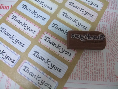 JUGEMテーマ:消しゴムはんこ 近所にセリアが出来ました♪ しかも結構広くて嬉しい*^^* これで実家に帰るたびに向こうの店舗に 寄らなくて済みます(笑) そんなセリアで見つけた ラベルシールが可愛かったので Thank youのはんこを作って 捺してみました。 イベントの時に使えそうです。