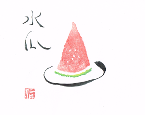JUGEMテーマ:消しゴムはんこ スイカです。 なんか、水瓜とも書くらしいですね。 西の瓜と書くスイカよりも、 個人的には、こっちの表記の方が、 「瑞々しさ」を感じていいなと。 手前みそですが、 デコボコした線や、 先っぽがちょこっとまがってる感じがまた、 おいしそう でしょ?