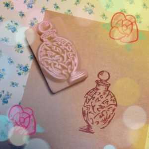 お疲れ様です、みやびです。 先日、香水瓶を作っておりましたが、こちらの オーダーの練習でした! 本番は・・・ ガラス細工が大変でした。 サイズは、2センチ×4センチくらいです。 スケッチ風といいますか・・・ 綺麗にできました! オーダー、ありがとうございます! JUGEMテーマ:消しゴムはんこ