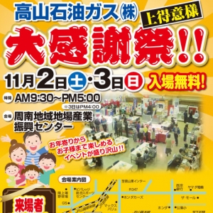 こんにちは! 今日は、イベントの告知です。 高山石油ガス株式会社様の大感謝祭!! 日時 11月2日〜3日 9:30〜17:00 場所 周南地域地場産業進行センター 人数 200名様ずつ400名様 私のブースは2階です。 ぜひ、お待ちしております! お楽しみに! JUGEMテーマ:消しゴムはんこ いつもありがとうございいます! http://miyabiland.com !!!通算オーダ...