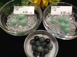 JUGEMテーマ:天然石ビーズ ブログをご覧の皆様、こんにちは3日連続で失礼します中門です最近、本当にイオン館内に居る方が涼しいので仕事が終わっても帰りたくない病を発揮して、当ても無いのに館内をうろうろしておりますさてさて本日は昨日に引き続き新入荷ビーズのご案内です本日はエメラルド!!パステルカラーで可愛い!!ちなみに下にあるエメラルドは、定番品としてビンに入っている商品です・・・比べると違いは歴然ですね・・・エメラルド・・・男女間で良い関係を築かせる、成功と勝利に導くお守り昨日もご紹介致し...