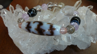 JUGEMテーマ:天然石ビーズJUGEMテーマ:浄化JUGEMテーマ:パワーストーンJUGEMテーマ:ラッキーアイテムJUGEMテーマ:開運・幸運についてJUGEMテーマ:天然石ビーズこんにちは。佐藤です本日は、スタッフのブレスレットを紹介したいと思います最初は・・・こちら誰のかしら五福臨門天珠を使っていますよ〜福・禄・寿・喜・財の五福を授けるといわれていますさらに、ミニ天珠も2つ亀甲天珠と山形天珠持ち主は・・・柿崎さんでしたつづきまして・・・佐藤ですルチルを入れてリメイクしました閃電五眼天珠なんかテン...