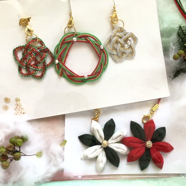 JUGEMテーマ:手作り/ハンドメイド雑貨 クリスマスが近づいてきましたね! 清明の会も、メンバーみんなでクリスマスにぴったりの新しい作品を作り、 ミンネのギャラリー「みつたま」に出展していますので ご紹介させていただきますね。^^ まず、こちらは「水引とつまみ細工のオーナメント」のクリスマスセットです。 みさとさんの作品、つまみ細工のポインセチアのオーナメント(2点)と みさき作成の水...
