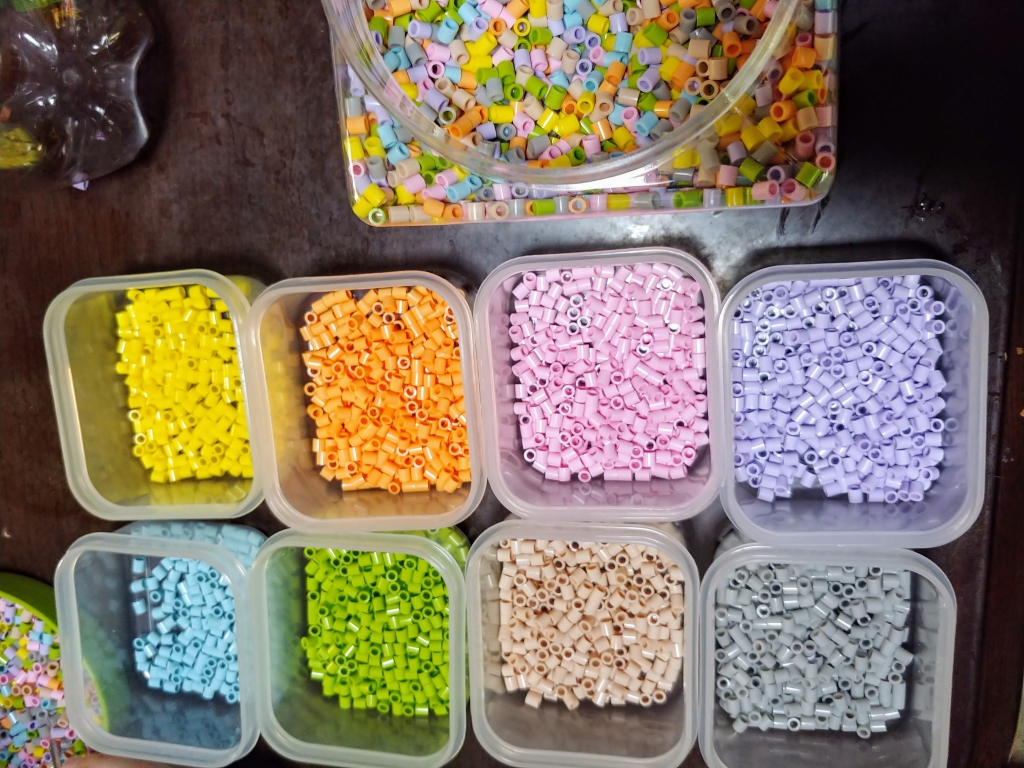 JUGEMテーマ:手作り/ハンドメイド雑貨 何年も前に買ったアイロンビーズ…確か長男が幼稚園のときに、うちでブームが起こって、色々種類を買ったんですが、飽きて使いきれず、ず〜っと場所を専有していたので、そろそろ精査することにしました。 うちは、基本的にIKEAのアイロンビーズを使ってます。安いんでね。 で、長男の時に集めたのがパーラービーズという、ちょっと高価なもので、発色が綺麗で、筒の縁も厚手だし、高さもあるからIKEAとは相性悪かったけど、...