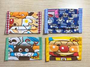 JUGEMテーマ:手作り/ハンドメイド雑貨 ガーゼマスクを作りました。 下のは大人用。上のは3歳の幼児用、幼児用型紙はあまり公開されていないので、自分で作ってみました。 子ども用の洋服を安く売っているお店でアンパンマンのガーゼハンカチを買って利用しました。 まだゴムは入れていません。