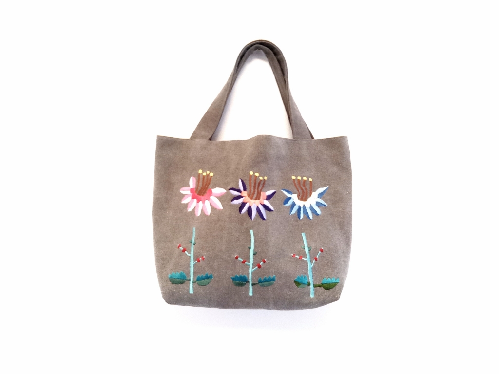 ユウタさん作「ハンガリーの花」が刺繍された、トートバッグが出来上がりました。 デザインもオリジナルで色とりどりのハンガリーの花が3つ可愛く咲いています。
