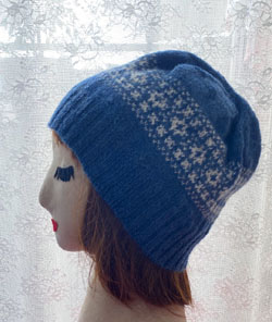 JUGEMテーマ:編み物 編み込み帽子、2つ目、2色で。 編み込みのニット帽を編みました。 模様は本から計算が合うパターンを選んで。 でも、丈がちょっと長すぎたので、また配色と寸法を変更してリベンジしたいと思います。