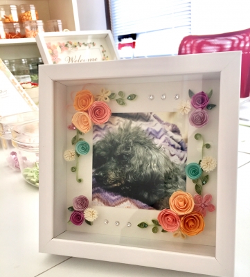 こんにちは。今日は先日のプライベートレッスンの様子を少しご紹介したいと思います。 プライベートレッスンでは、結婚式のウェルカムボードやサンクスボードなどを作りに申し込まれる方が多いのですが、この日は亡くなったワンちゃんの写真を飾るフレームを作りたいという方のレッスンでした。 今や子供の数よりペットの数が上回る時代です。このワンちゃんも17年間一緒に過ごしたそうです。 最後の2年間は寝たきり介護状態だったとのことですが、思い出がいっぱいで亡くした時の心の穴はきっと大き...