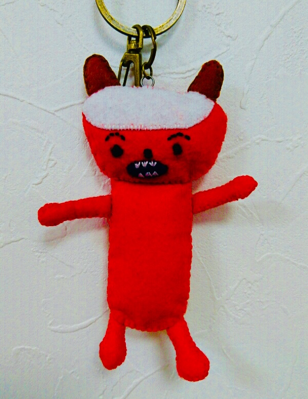これは、ミホさんの描いた「鬼」がとっても可愛くて、 マスコットにしました。 ミホさんの絵をマスコットにすると、面白くて、可愛くて なかなか手放せないままになっています。 650