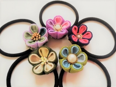 春〜初夏にぴったりのヘアゴムを作りました。 ちょうど桜もちらほらと葉が出始めてきたところですが、水色と萌木色を合わせた、 桜萌黄の重ね。 藤の重ねは緑を使ったものもありますが、紫のグラデーションの白藤の重ねに、 春らしいピンクも入れて、華やかさを出してみました。 菖蒲の重ねもいくつものパターンがありますが、昔は緑を青と呼んでいたようで、 おそらく実際は緑と紅梅の組み合...