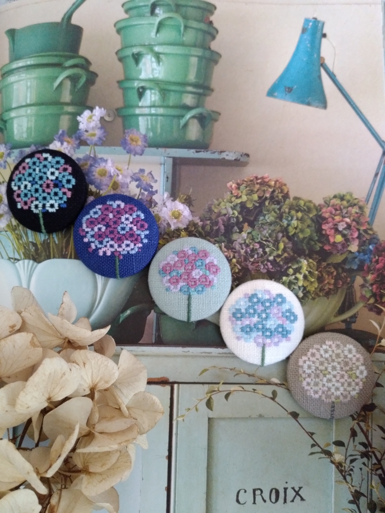 JUGEMテーマ:手作り/ハンドメイド雑貨 ここ最近は新しいモチーフを作っておりました。 新作『紫陽花』出来上がりました。 ずっと刺したいと想っていたお花。 タイルの様な甘過ぎない紫陽花に仕上がったかなと思っています。 全部で5色。 最後のは、立ち枯れのドライの紫陽花をイメージした一味違う紫陽花です。 どのcolorの紫陽花が今の気分でしょうか...? 38mmサイズのブローチです。 もうひとつ新作です。 mimosaリースのピアスとイヤリング。 濃淡いろん...