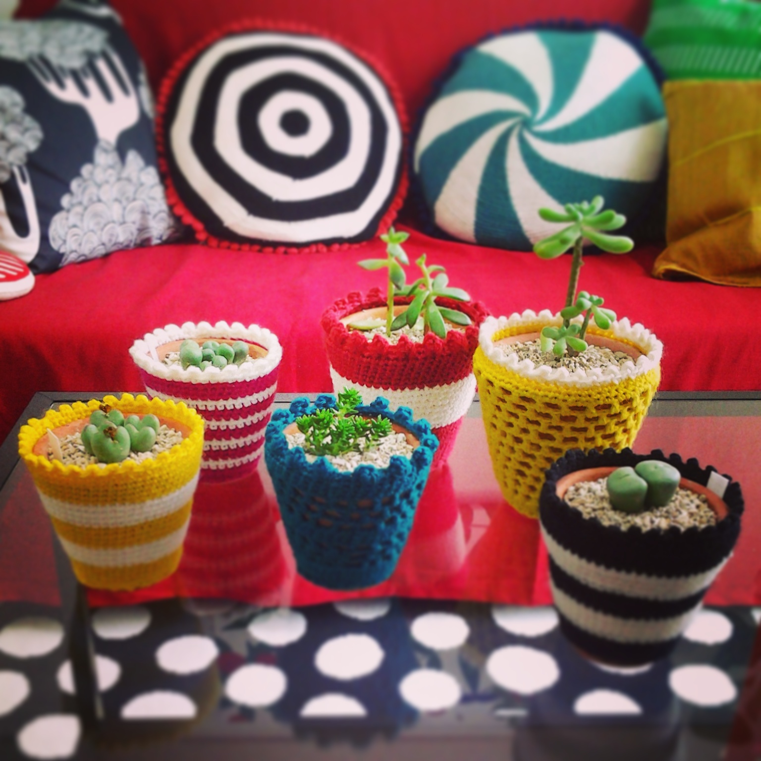 サロンの多肉植物、大切な春桃玉が夏の終わりに死んでしまい、 失意の中、桃玉を探してもなかなか見つからず、 似たようなコノフィツム系を仕入れてまいりました。 奥歯が並んでいるようで、これまた魅力的なコです。 鉢はクロッシェ編みの鉢カバーを付けたものにしました★ なかなかかわいいです(*^_^*) chie JUGEMテーマ:handmadeな毎日。