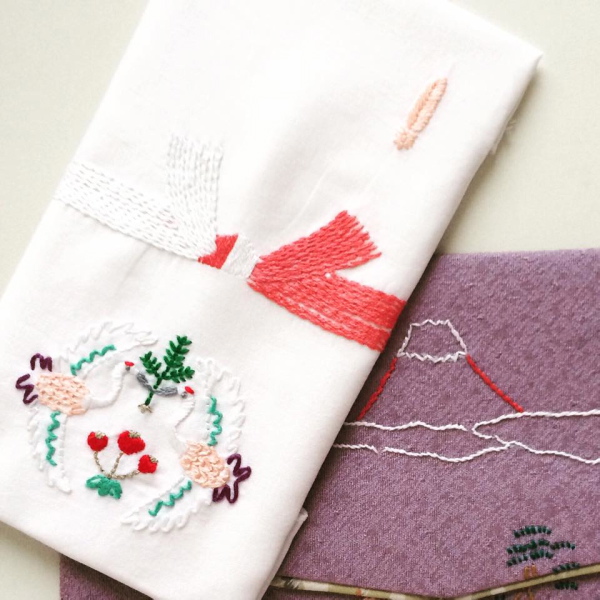 土曜日、すてきなひとのすてきな結婚パーティにお招き頂き、お祝いに伺いました。 はじめて刺繍でつくってみた熨斗袋。 夫婦円満などあらゆるおめでたい意味がこもっているとされる「向い松喰い鶴」と清浄を表す「羽」です。 「向い松喰い鶴」は古代オリエント発祥の含綬鳥文や咋鳥文がシルクロードを渡って中国に伝わり、正倉院御物にも遺る花喰い鳥文になったという吉祥文です。 日本にはおめでたい文様がたくさんありますが、異なる文化を吸収し変化をしながら伝統となったこの文が、行動力があって、...