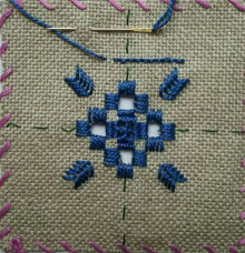 JUGEMテーマ:刺繍 刺繍教室はハーダンガー刺繍をしました。 講習時間の2時間でなんとかここまで進みました。 後は周りバックステッチとサテンステッチを刺してピンクッションに仕立てます。 織り糸を切るのが凄くドキドキしました(ドロンワークより緊張でした) クロスステッチの方は &...