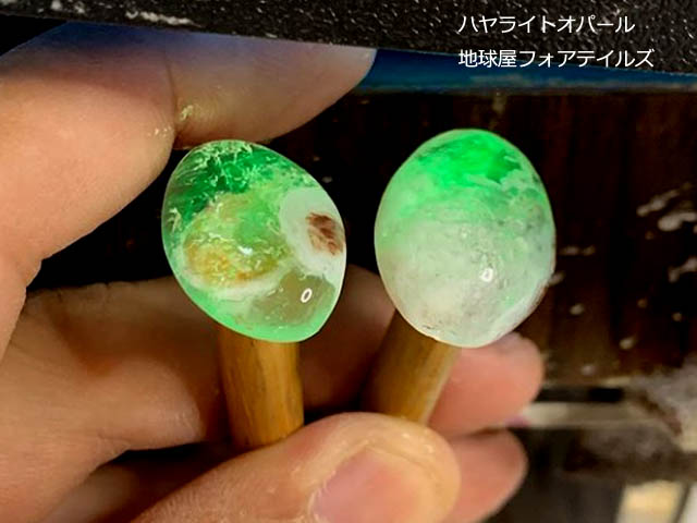 JUGEMテーマ:天然石・原石・ルース 久しぶりの天然石屋話です。。。 ハヤライトオパールの原石研磨依頼が来ていましたが、なかなか難しいんです。コレ。 凹凸があるオパールなので、最大値をどう削りだすか。。。割れたらダメ。穴あきでもダメ。 以前、鉱山主のダニエルさんに、これをカボションにしたいと告げると、目を見開いて驚いた顔で、「無理だ」と言って笑った。 ハヤライトオパールは、玉滴石とも呼ばれ、粒状の雫がブドウの房のように塊を形成しているような石。そのため...