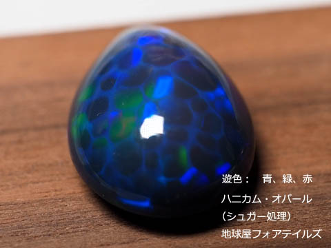 JUGEMテーマ:天然石・原石・ルース バンコクで仕入れたモノ。写真でこれだけの遊色が撮影できるということは?というくらいきれいなオパール。 ま、天然石、それもオパールともなると、お客様の方がオレより詳しいのでは?と。 ブラックを誇張するために、「シュガー処理」されたオパール。砂糖で煮込んで処理するんだって。面白いこと考えるなぁ。 でも、ブラックの中にハニカム模様、ブルーとグリーンがキラキラして、そりゃあ、綺麗なんてもんじゃない。 こ...