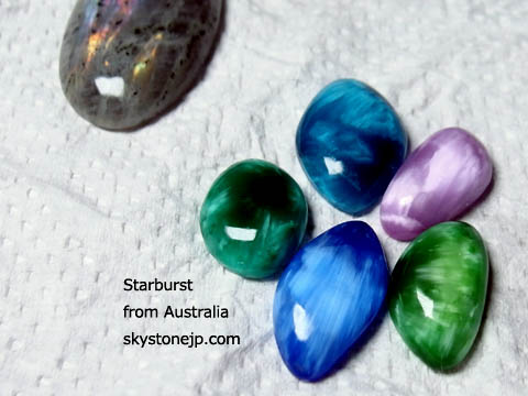 JUGEMテーマ:天然石・原石・ルース スターバーストの販売、本日 12:30〜です。 11点のみ。初回なので2割引き価格にしてあります。 スターバースト(Starburst)は、飯森博士の作ったビクトリア・ストーンの製法を解析してオーストラリアで作られた人工宝石です。原石を研磨すると見た目はビクトリアストーンとほとんど同じです。オーストラリア産のものは、「スターバースト」という新しい名前で市場にわずかに流通し始めたばかりの新しい人工宝石です。 ...