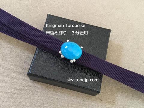 JUGEMテーマ:天然石・原石・ルース ターコイズの帯留め(爪留め)を制作しました。(依頼品) お待たせしました。。。明日の発送となります。 キングマンターコイズのとても綺麗なスカイブルーのターコイズで1粒の贅沢な帯留めになりました。 市販されている多くの「ターコイズの帯留め」には、いわゆるニセモノ・ターコイズ(色に染めた石)が接着してあります。 やはり、偽物のそれは淡いブルーで筋が入れてあったり、それっぽい・・・感じにしてあるのですが。。。 このよ...