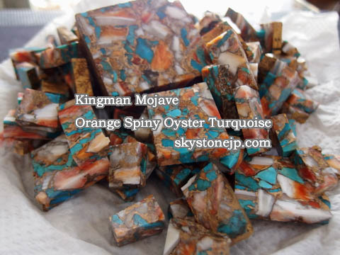 JUGEMテーマ:天然石・原石・ルース 本日研磨分です。 キングマン鉱山のモハべシリーズには、本物のターコイズの欠片が使われます。この為、中にはとんでもないGemグレードが混じることがあるので、人工石とはいえ、USAで一番大きなターコイズ鉱山が本気で作る人工石、、、バカにはできません(笑) 特大サイズ、オレンジスパイニーオイスターターコイズ 原石(ブロック)をカットするところから、ターコイズ多めの部分を切り出して贅沢な1点に仕上げてみました。 ...